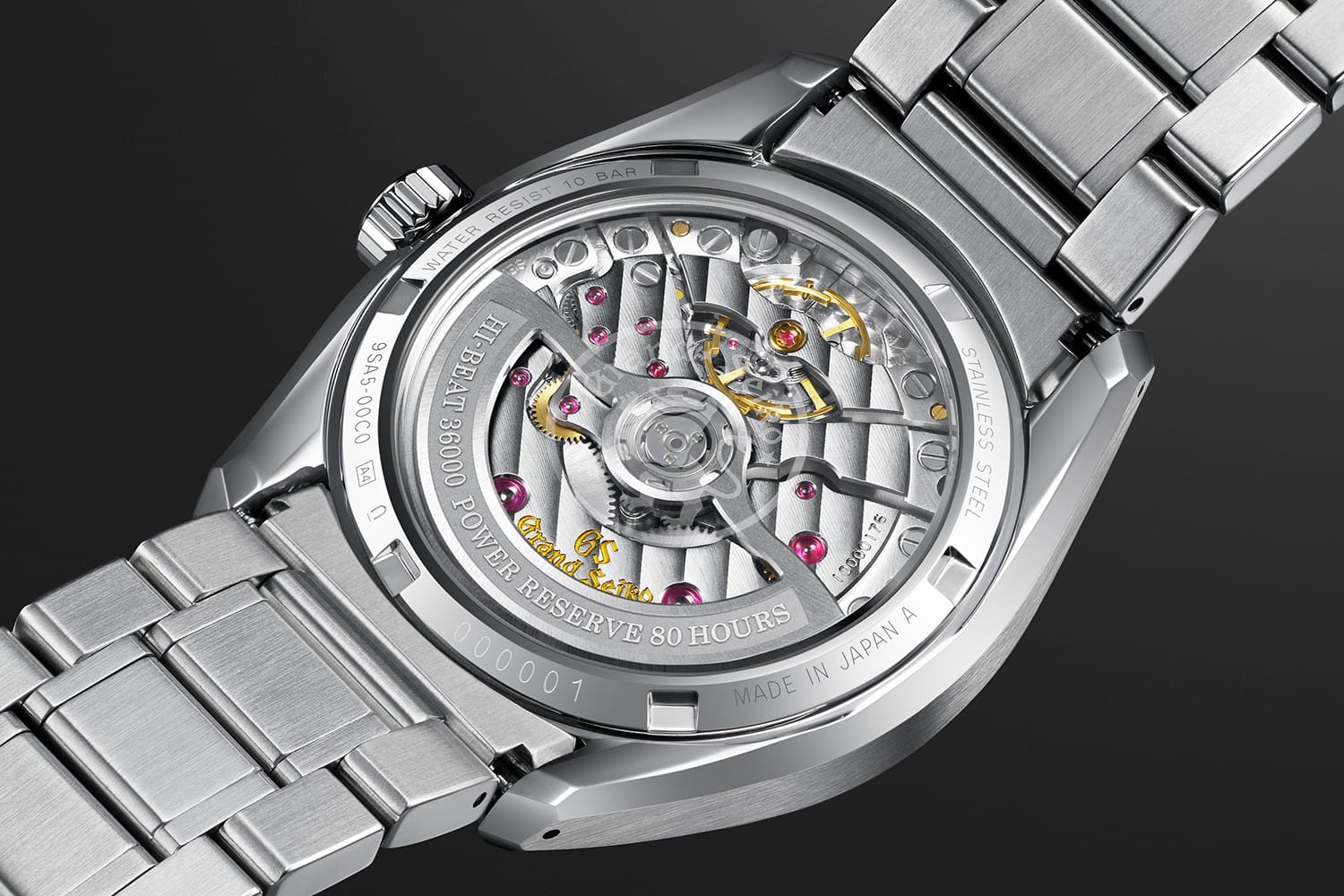 9S 기계식: GS의 고급 기계식 엔진(9S)은 '정확도'와 '파워리저브(태엽을 한 번 감았을 때 시계가 작동하는 총 시간)'는 반비례한다는 기계식 시계의 '물리적 한계'에 도전했습니다. '반도체 기술(MEMS, 반도체를 만들 때 쓰는 초정밀 가공 기술)'과 새로운 '탈진기(기계식 시계의 심장부로, 태엽의 힘을 일정하게 조절해 '째깍'거리는 속도를 만드는 부품)'인 '듀얼 임펄스'를 동원했습니다. 그 결과 '10비트 고진동(시계의 심장 박동이 1초에 10번 움직일 만큼 매우 빨라 정확도가 높아짐)'과 '80시간 파워리저브'라는 모순처럼 보이는 두 가지를 함께 구현했습니다.